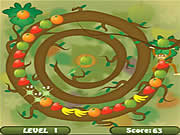 Group three or more the same fruits to eliminate them before they all fall down. Good luck and have fun.